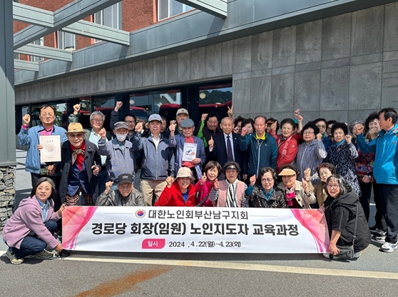 [뉴스서치] (사)대한노인회 부산남구지회는 지난 22일 1박 2일간의 일정으로 신임 경로당 회장과 조용광 지회장 등 경로당 관계자 40명이 참석한 가운데 충주 수안보로 2024년도 경로당 노인지도자 양성 교육을 다녀왔다.