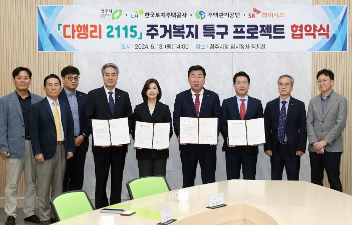 [뉴스서치] 청주시는 13일 임시청사 직지실에서 ‘다행리 2115* 주거복지 특구 프로젝트’ 공동 추진을 위해 한국토지주택공사 충북지역본부, 주택관리공단, SK하이닉스와 업무협약을 체결했다.