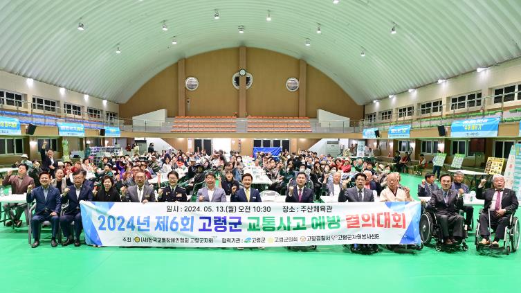 [뉴스서치] 한국교통장애인협회 고령군지회는 5월 13일 주산체육관에서 이남철 고령군수와 장애인 및 보호자, 자원봉사자, 지회 회원 등 150여 명이 참석한 가운데 제6회 교통사고예방 결의대회를 개최하였다.