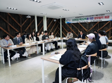▲ 26일 스타코 회의실에서 영천별아마늘을 활용한 스타트업 육성 교육을 위한 협약식이 열렸다. |
