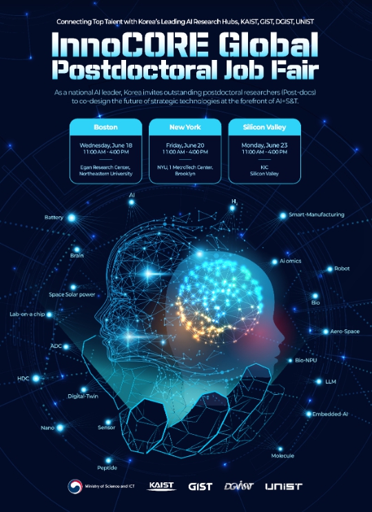 [뉴스서치] 과학기술정보통신부와 4개 과학기술원은 AI 융합 분야(AI+S&T)의 첨단전략 연구를 이끌 ‘이노코어(InnoCORE) 연구단’ 8개를 선정하고, 이를 통해 국내·외 최고 수준 박사후연구원(Postdoctoral researcher) 400명 채용을 본격화한다.