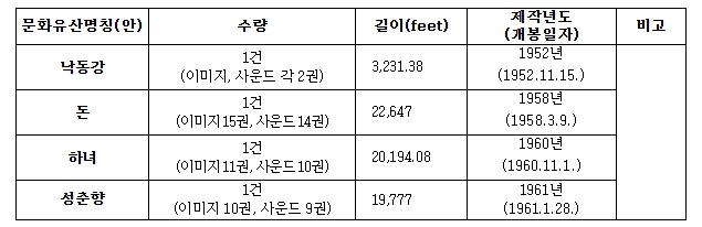 [뉴스서치] 국가유산청은 4편의 한국영상자료원 소장 영화 '낙동강','돈','하녀','성춘향'을 각각 국가등록문화유산으로 등록 예고했다.
