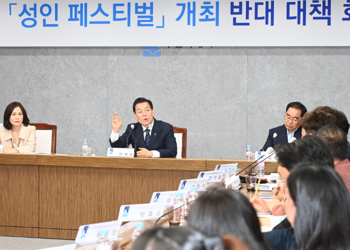 29일 시청 상황실에서 열린 ‘성인페스티벌 개최 반대 대책회의’를 주재한 이재준 시장은 “오늘(3월 29일) 성인페스티벌 개최 예정 장소인 수원메쎄에 행사 취소를 요청하는 공문을 보낼 것”이라며 “주최 측이 행사를 취소하지 않고, 강행한다면 행정대집행으로 행사 개최를 저지하겠다”고 천명했다.