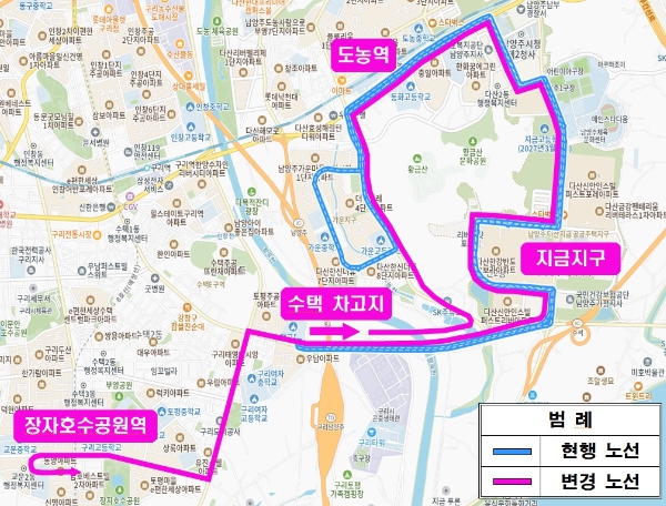 앞서 시는 지난 13일 지하철 8호선 개통에 대비해 다산역을 경유하는 7개 버스노선을 개편한 바 있다. 이에 더해 다산 지금지구 주민들의 지하철 접근성 향상을 위해 버스노선을 연장하는 것이다.