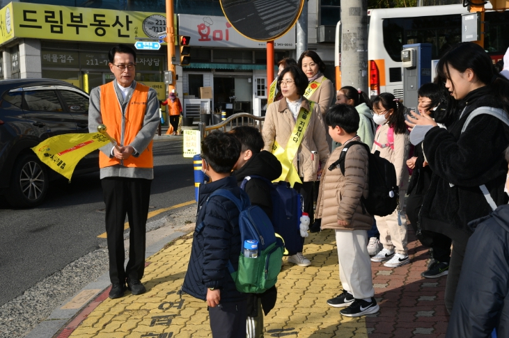 이순걸 군수는 이날 사업 참여 어르신들과 함께 등·하교시간 스쿨존 내 통학안전 보행지도와 교통안전 캠페인 활동을 펼치며 교통사고 예방에 힘썼다.