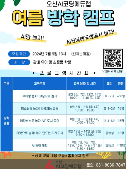 ▲ 오산시, 오산AI코딩에듀랩에서 ‘2024 여름방학 캠프’운영 |