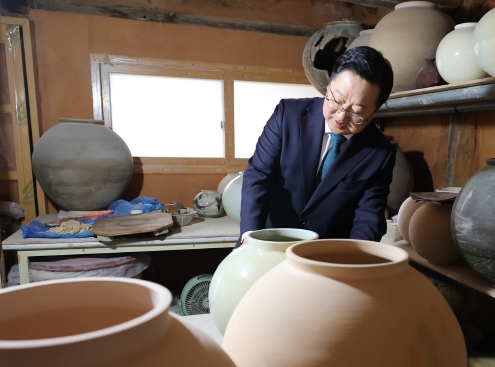 [뉴스서치] 이장우 대전시장은 12일 오전 故이종수 도예가 작업실을 방문, 유족들을 만나 미술관 건립에 대한 의견을 나누고, 고인의 작업 공간 및 작품들을 둘러봤다.