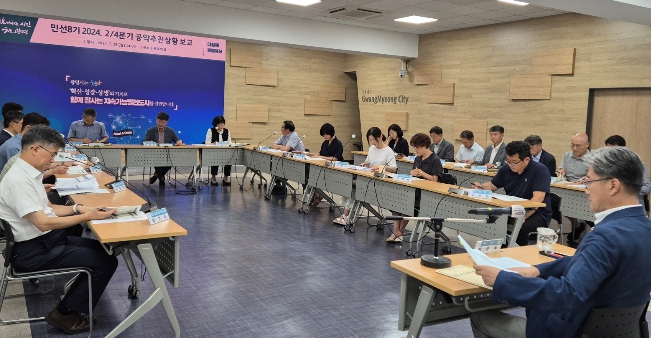시는 29일 오후 시청 중회의실에서 정순욱 부시장 주재로 2024년 2분기 민선8기 공약추진상황 보고회를 개최해 공약 추진 상황을 점검하고 이행률을 높이기 위한 대책을 논의했다.