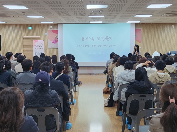 총 80명의 지역주민이 참여한 이번 강연은 이슬아 작가와 함께 글쓰기의 기쁨과 슬픔, 글쓰기를 업으로 하는 사람의 하루는 어떻게 흘러가는지에 대해 신간 ‘끝내주는 인생’을 중심으로 이야기를 나눴다.