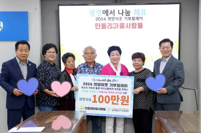 민들레마을사람들에게 받은 성금은 광명희망나기운동본부를 통해 복지사각지대 저소득 가정 생계비로 전달될 예정이다.