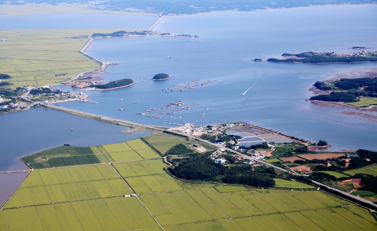한편 AB지구는 간척 농지 조성을 통한 식량 증산 및 식량 자급률 제고, 농산물 증산을 통한 수입 대체, 수자원 확보 등을 위해 현대건설이 1980년 5월 공사를 착공해 1995년 8월 완공했다.