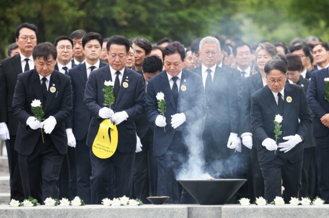이후 참석자들은 대통령 묘역을 찾아 분향과 헌화를 하며 고인을 기렸다.