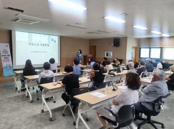 이번 교육은 인공지능·사물인터넷(AI·IoT) 기반 어르신 건강관리 사업의 일환으로 한국사회보장정보원과 협력하여 진행됐으며, 65세 이상 어르신 40명을 대상으로 일상생활에서 흔히 접하는 스마트 기기와 정보통신기술(ICT)을 안내하고, 오늘건강(건강관리 앱), 카카오톡, 유튜브 등 다양한 앱 사용법을 배워 실생활에 활용할 있도록 했다.