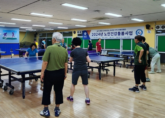 ▲ 30일 대한노인회 유성지회에서 어르신들을 위한 노인 건강 돌봄 사업인 「돌봄학교-운동교실」 탁구 수업이 진행되고 있다. |
