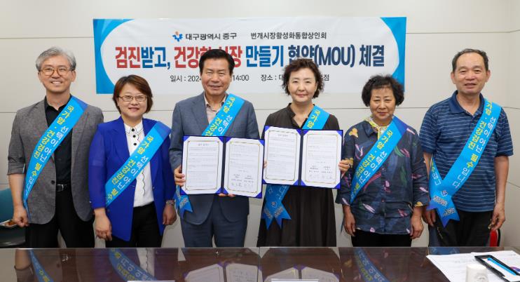 [뉴스서치] 대구 중구는 8일 번개시장(태평로 177-1)에서 번개시장 활성화통합상인회와 검진받고 건강한 시장 만들기 업무협약(MOU)을 체결했다.