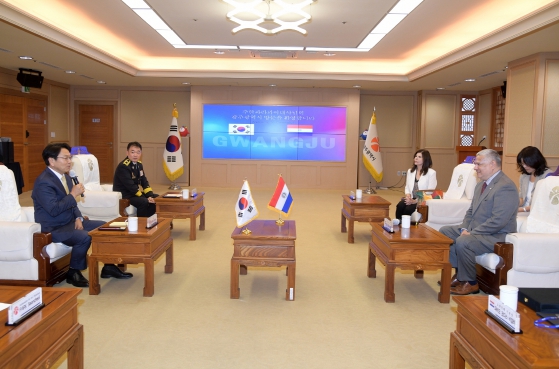 강기정 광주광역시장은 9일 시청 3층 접견실에서 미겔 앙헬 우발디노 로메로 알바레스 주한 파라과이 대사와 접견했다.