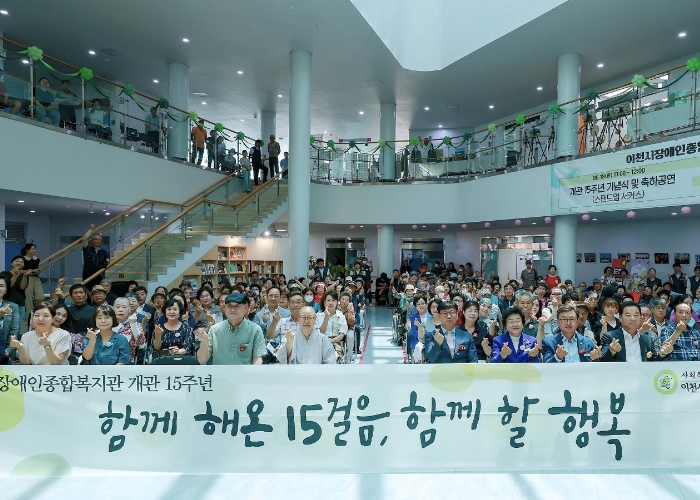 이날 기념식에는 김경희 이천시장을 비롯해 관내 유관기관 관계자, 복지관 이용자, 지역주민 등 350여 명이 참석해 이천시장애인종합복지관의 열다섯 번째 생일을 축하했다.