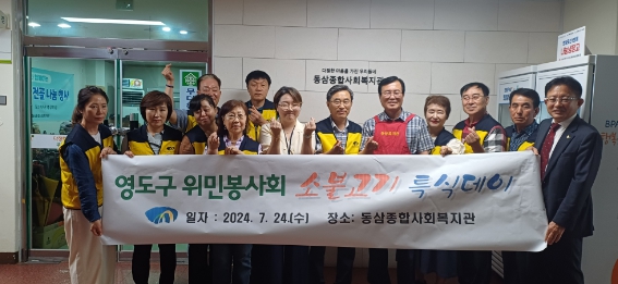 [뉴스서치] 영도구 위민봉사회는 지난 7월 24일 동삼종합사회복지관 경로식당에서 관내 어르신 및 이웃주민 등 100여명을 대상으로 소불고기 특선 점심 식사를 대접했다.
