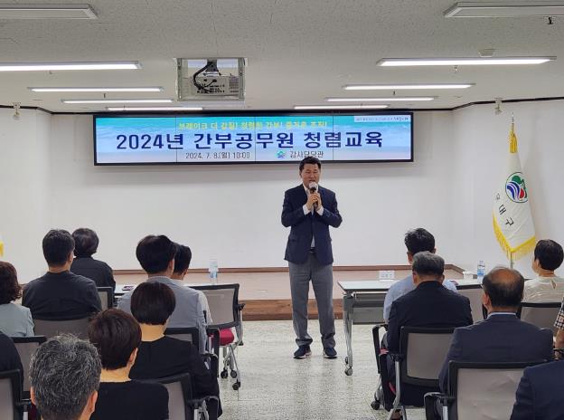 김성수 구청장은 교육 중“상대방의 마음을 잘 헤아린다면 갑질 논란은 없을 것”이라며,“갑질과 특혜 없는 청렴한 해운대를 조성하기 위해 간부 공무원들의 노력이 필수적”이라고 강조했다.