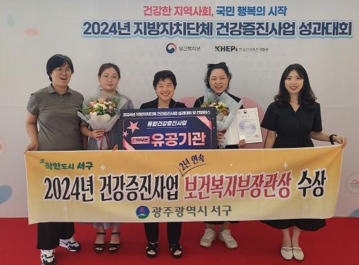 [뉴스서치] 광주광역시 서구는 5일 제16회 지방자치단체 건강증진사업 성과대회에서 우수 지자체로 보건복지부장관 표창을 수상했다. 서구는 지난해 통합건강증진사업 우수사례 공모 선정에 이어 2년 연속 우수 지자체에 선정됐다.