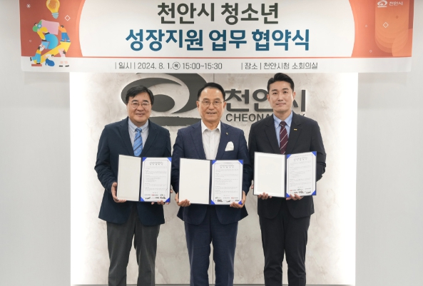 이들 세 기관은 업무협약을 통해 지역 특성에 맞는 청소년 성장지원체계 구축과 이를 위한 네트워크 연계, 천안시 청소년 관련 정책 지원, 공동사업·연구추진 등에 협력하기로 했다.