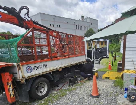 이번에 설치된 장치는 조달청에서 혁신제품으로 선정된 지역 벤처기업 ㈜아라온의 친환경 전자식 매연저감 장치로, 연소 조건을 개선해 차량 매연을 60% 이상 줄이고 연비를 3% 이상 향상시키는 효과가 있다.
