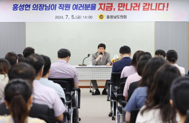 [뉴스서치] 충남도의회 홍성현 의장(천안1‧국민의힘)이 5일 후반기 의회 출범을 맞아 의회 운영 방안을 공유하고자 사무처 전 직원과 소통의 시간을 가졌다.
