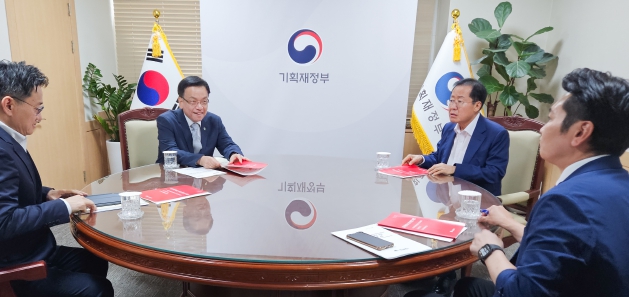 [뉴스서치] 홍준표 대구광역시장은 6월 18일 오후 4시, 정부서울청사에서 최상목 경제부총리를 만나 대구경북통합신공항 및 접근교통망, 물류·교통 인프라, 5대 미래신산업 육성과 관련된 주요 현안 사업 9건에 대해 논의하고 기재부의 적극적인 지원과 협조를 요청했다.