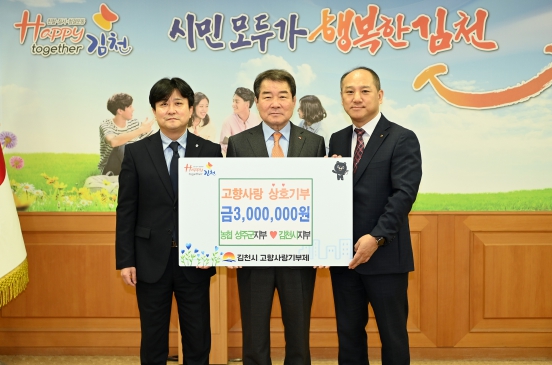 이번 상호기부는 박기화 김천시지부장과 이주호 성주군지부장을 비롯한 임직원이 총 600만 원(각 300만 원)을 기부하며 고향사랑기부제에 동참했다.