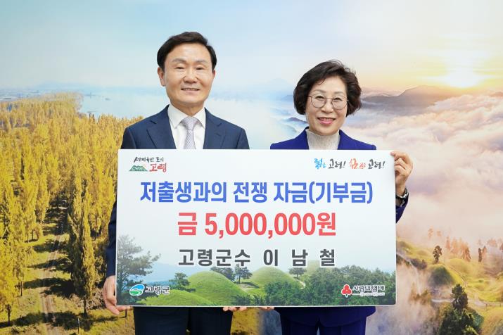 [뉴스서치] 이남철 고령군수는 16일 저출생 극복을 위한 성금 5백만원을 경북사회복지공동모금회에 기부하였다.