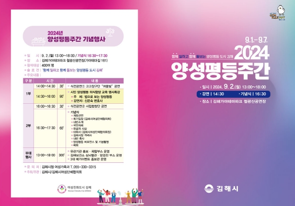 ▲ “함께 일하고 함께 돌보는 양성평등 도시 김해” 김해시, 2024 양성평등주간 다채로운 행사 운영 |