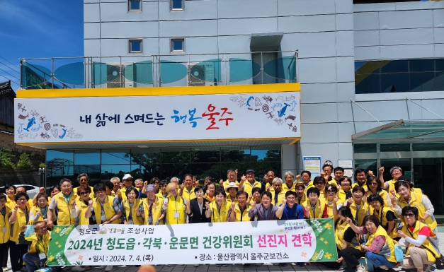 [뉴스서치] 청도군은 지난 4일 청도읍 유호지구·각북·운문면 건강위원 및 건강리더 70여명은 주민 주도적 건강마을 만들기와 걷기 친화적 환경조성을 위해 울산광역시 울주군보건소를 견학했다.