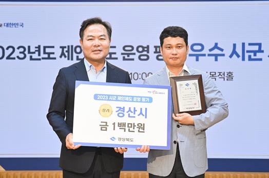 ▲ 경산시, 경상북도 제안제도 운영 평가 장려상 수상 |