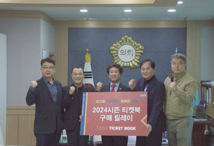 이명기 의장은 “김천상무는 14만 김천시민에게 건강한 여가 선용의 기회를 제공한다. 김천시의회도 김천시민과 함께하기 위해 티켓북 릴레이에 동참했다. 올 시즌 좋은 경기력으로 시민들께 행복과 기쁨을 드리기를 바란다.”고 말했다.
