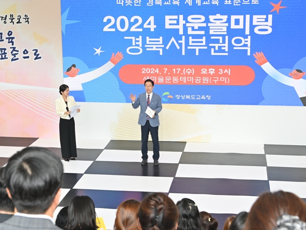 [뉴스서치] 경북교육청은 17일 구미시에 있는 새마을운동테마공원 전시관에서 구미시, 김천시, 상주시, 칠곡군, 성주군, 고령군 등 6개 지역 학부모와 지역민 등 100여 명이 참석한 가운데 ‘따뜻한 경북교육 세계교육의 표준으로’를 주제로 2024 구미 타운홀 미팅을 개최했다.