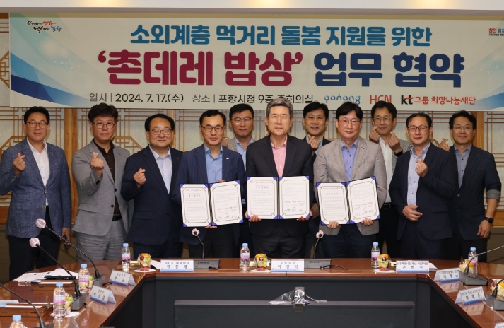 [뉴스서치] 포항시는 17일 시청 중회의실에서 HCN, KT그룹희망나눔재단과 소외계층 먹거리 돌봄 지원을 위한 ‘촌데레 밥상’ 업무 협약식을 개최했다.
