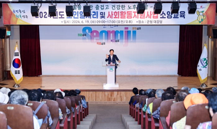 [뉴스서치] 성주군은 6월 19일 성주군 직영 노인일자리 참여자 421명을 대상으로'2024년 노인일자리 및 사회활동지원사업 소양교육(일을 통한즐겁고 건강한 노후의 삶)을 실시했다.