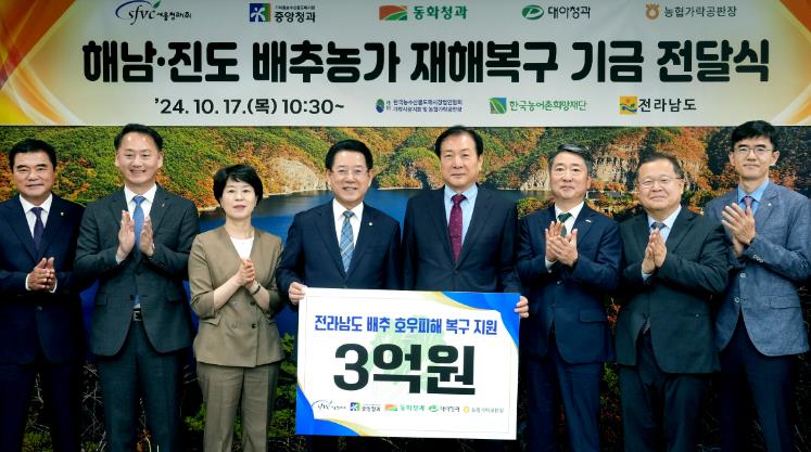 [뉴스서치] 전라남도는 17일 한국농어촌희망재단으로부터 9월 배추 호우피해 농가 복구를 위한 상생기금 3억 원을 기탁받았다고 밝혔다.