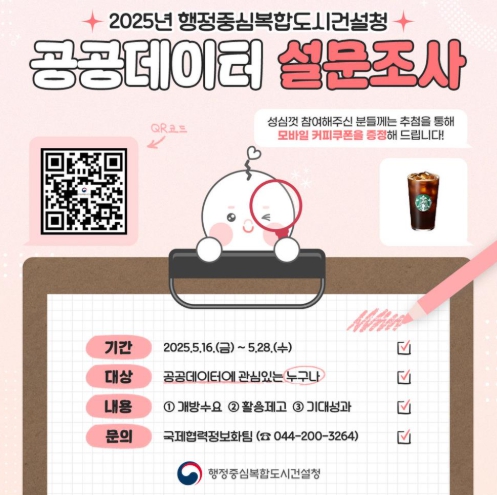 [뉴스서치] 행복청은 5월 16일부터 5월 28일까지 국민을 대상으로 공공데이터 이용 활성화를 위한 설문조사를 실시한다.