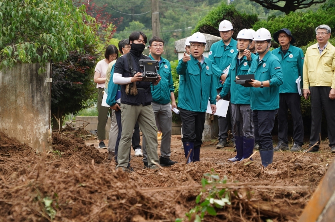 또한 기록적인 폭우에도 산사태 피해를 예방하는데 큰 역할을 한 익산시 함라면 사방댐 설치지역도 방문해 현장점검 했다. 지난 2022년 6월, 계곡 하류부 농경지 및 생활권 지역을 산사태로부터 보호하기 위해 설치된 이 사방댐은 이번 집중호우 기간에 계곡 상류에서 25톤 트럭 53대 분량의 토사와 유목이 흘러내리는 것을 막아 하류에 있는 민가‧농경지 피해와 인명피해를 예방했다.