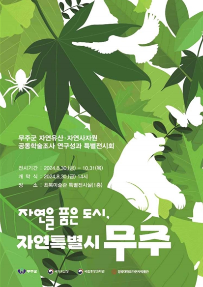 [뉴스서치] 국가유산청은 국립중앙과학관, 전북 무주군과 함께 8월 30일부터 10월 31일까지 최북미술관 특별전시실(전북 무주군)에서 자연유산·자연사자원 공동학술조사 연구 성과 특별전시 '자연을 품은 도시, 자연특별시 무주'를 개최한다.