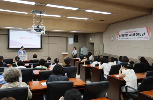 ▲ 마포구청 시청각실에서 경력단절여성과 예비창업자를 위한 SNS 활용 마케팅 교육이 실시됐다. |