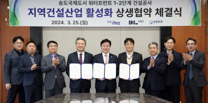 [뉴스서치] 인천경제자유구역청은 25일 송도국제도시 G타워에서 송도국제도시 워터프런트 1-2단계 건설 공사와 관련한 ‘지역건설산업 활성화를 위한 상생협약’을 체결했다고 밝혔다.