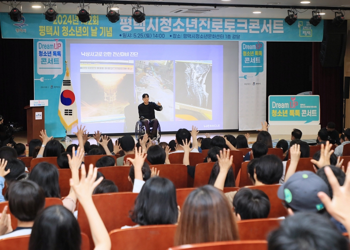 이번에 평택시 청소년의 날 기념 메인 행사로 개최된 평택시 청소년진로토크콘서트는 비전중학교 뮤즈와 비전고등학교 베네피트의 축하 공연과 모범청소년 표창 등의 사전행사를 시작으로 크리에이터 위라클(박위)의 ‘기적의 삶’이라는 도전에 대한 주제로 200여명의 청소년에게 감동과 긍정의 힘을 심어주는 소중한 시간이 됐다.