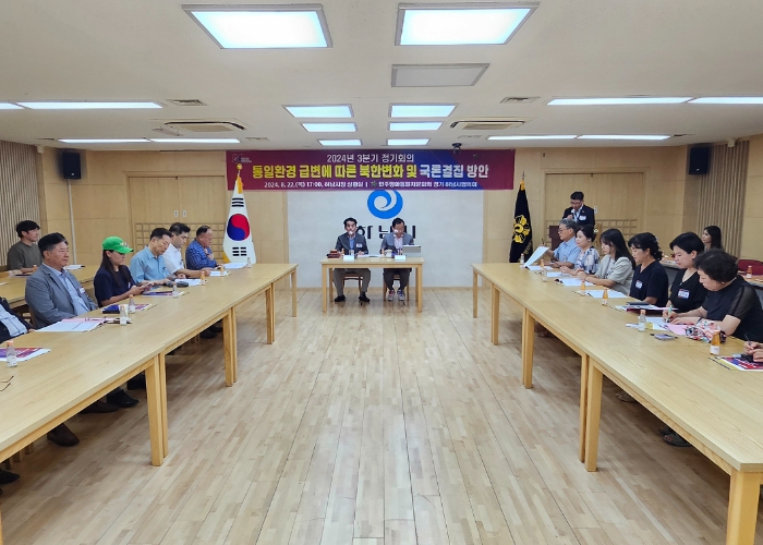 [뉴스서치] 민주평화통일자문회의 하남시협의회는 8월 22일 오후 5시 하남시청 상황실에서 하남시장, 자문위원 등 27명이 참석한 가운데 ‘통일환경 급변에 따른 북한변화 및 국론결집 방안’을 주제로 ‘2024년 3분기 정기회의’를 개최했다.