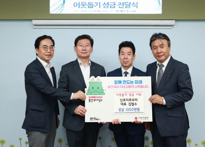 시청 시장실에서 열린 기탁식에는 이상일 용인특례시장, 신포리쭈꾸미 김철수 대표, 사랑의열매 홍보대사인 연예인 박영규, 경기사회복지공동모금회 사무처장 김효진이 참석했다.