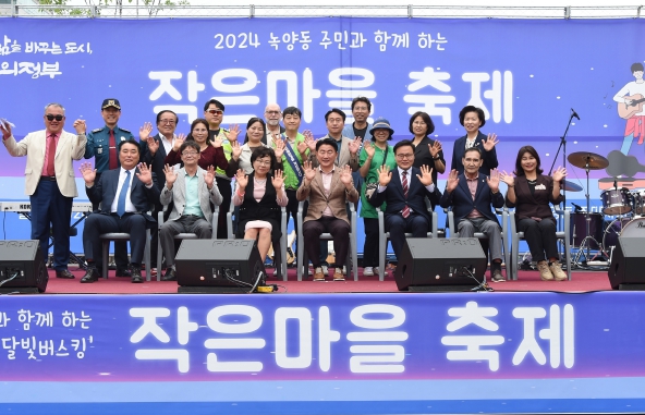 ▲ 김동근 시장이 5월 25일 녹양역 서부광장 일원에서 ‘2024년 녹양동 주민과 함께하는 작은마을 축제’에 참석해 내빈들과 기념사진을 찍고 있다. |