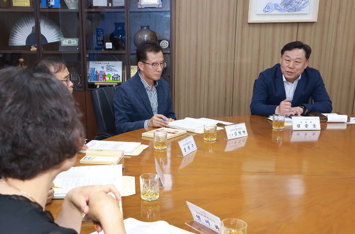 ▲ 동구는 27일 구청장실에서 김종훈 동구청장 및 공약이행평가단이 참석해 공약사업 추진실적 및 이행상태를 평가하고 공약사업 변경 등에 대한 설명 및 의견청취를 위한 회의를 가졌다. |