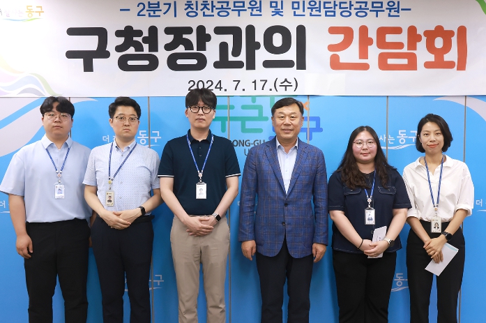 [뉴스서치] 울산 동구는 7월 17일 오후 2시 30분 구청장실에서 민원담당공무원 등 8명이 참석한 가운데, ‘2분기 칭찬공무원 격려’ 및 ‘구청장과 민원담당공무원과의 간담회’를 개최했다.