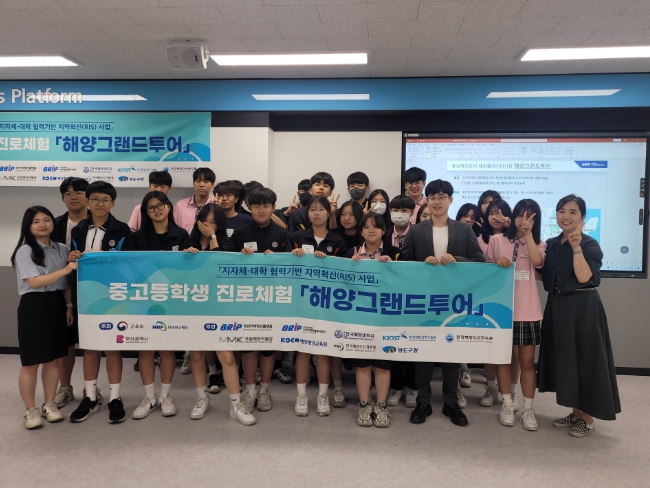해양그랜드투어는 동삼혁신도시 해양클러스터 6개 기관 ▲국립한국해양대학교(해양진로) ▲국립해양박물관(해양역사·문화) ▲한국해양과학기술원(해양과학) ▲한국해양수산개발원(해양산업) ▲한국해양수산연수원(해양안전) ▲해양환경교육원(해양환경)의 전문 분야를 중고등학생 진로 체험에 맞추어 개발한 프로그램으로 이번 해양그랜드투어는 RIS 스마트항만물류 사업단과 한국해양수산연수원이 항만물류 산업의 이해와 해양안전 바다 안전지킴이를 주제로 진행하였으며 학생들은 항만물류 분야에 취업한 졸업생들의 진로 사례에 적극적인 관심을 보였다.